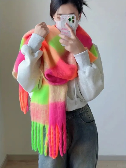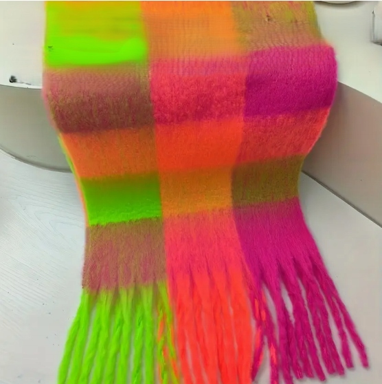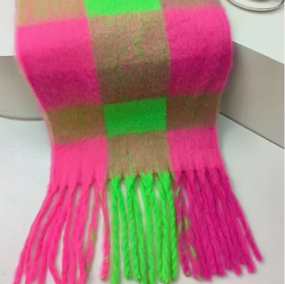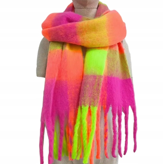 Zanurz się w miękkości i elegancji tego wyjątkowego szalika w jaskrawą różowo-pomarańczową kratkę. To idealny dodatek na chłodne dni, który nie tylko chroni przed wiatrem i zimnem, ale też dodaje klasy każdej stylizacji.