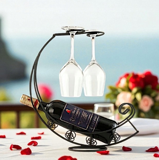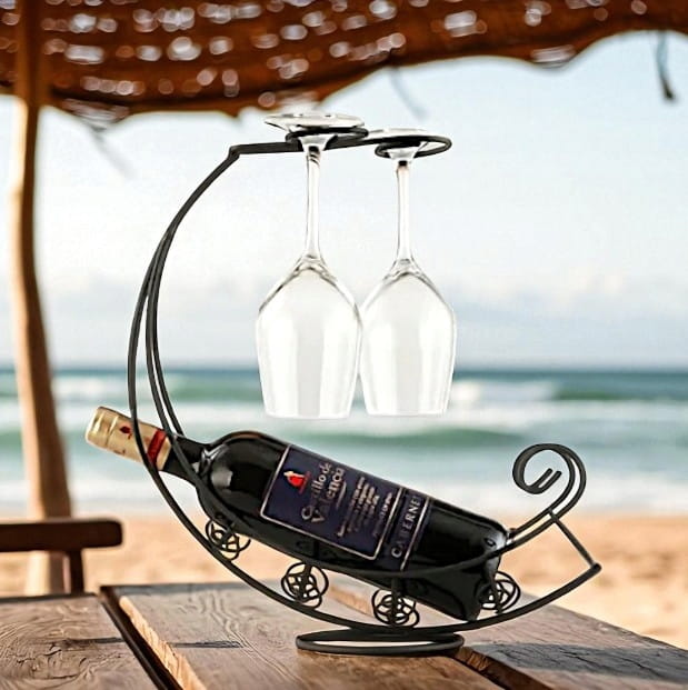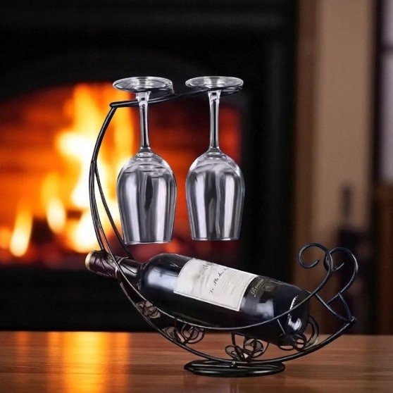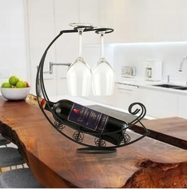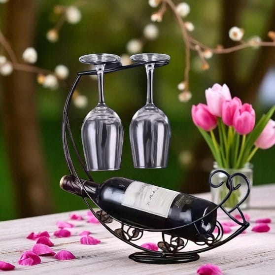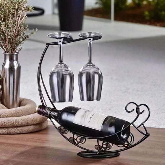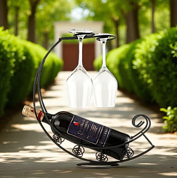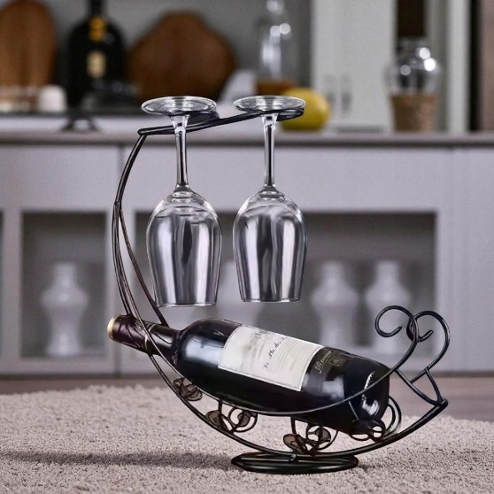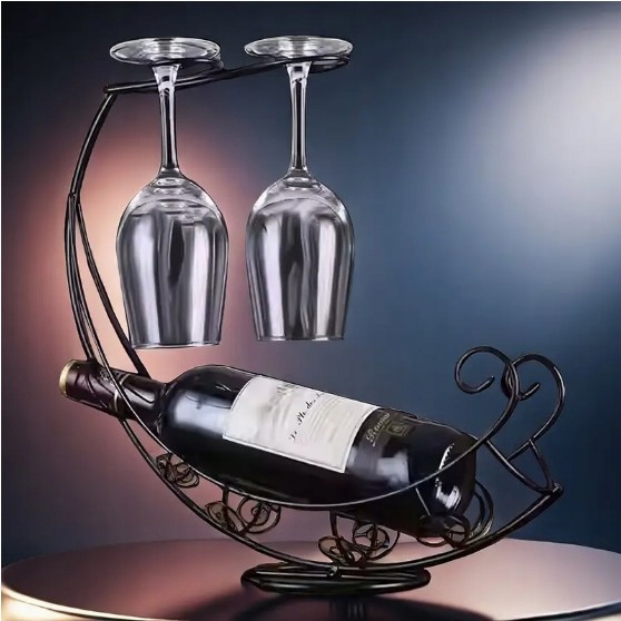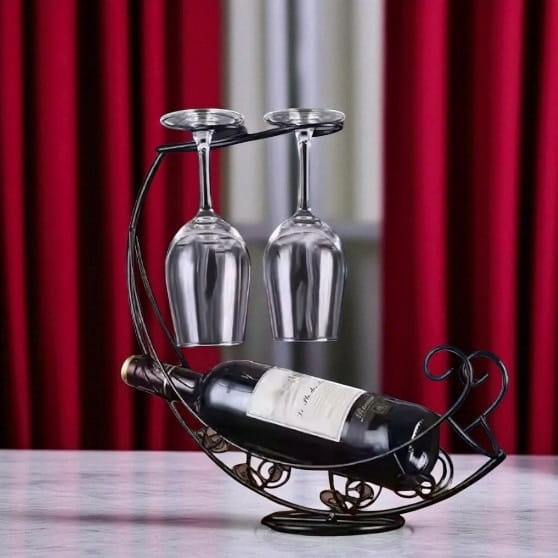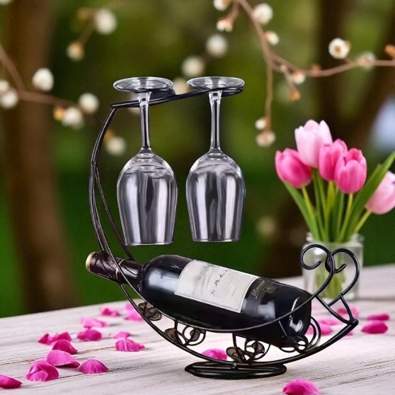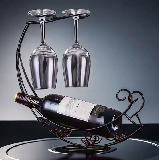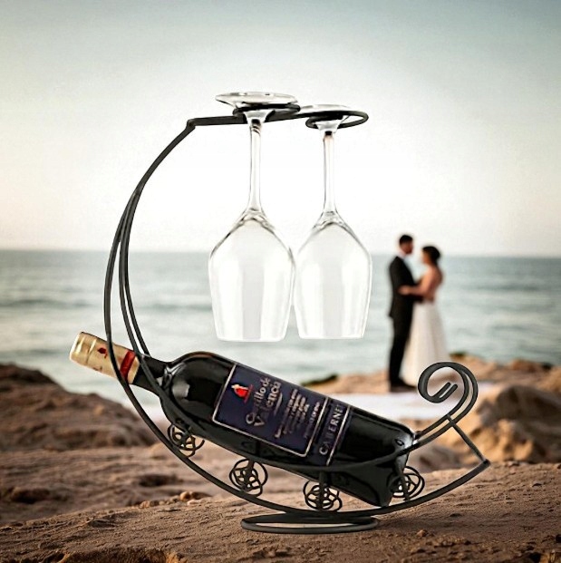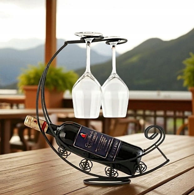 ✅ Zastosowanie: stojak na butelkę do wina i dwa kieliszki