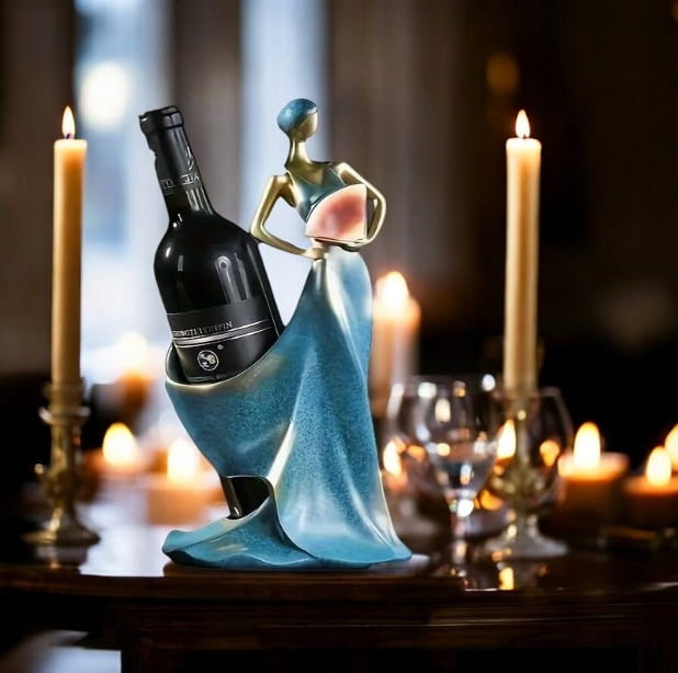 Elegancki stojak na wino w kształcie kobiety, dekoracyjny uchwyt na butelkę