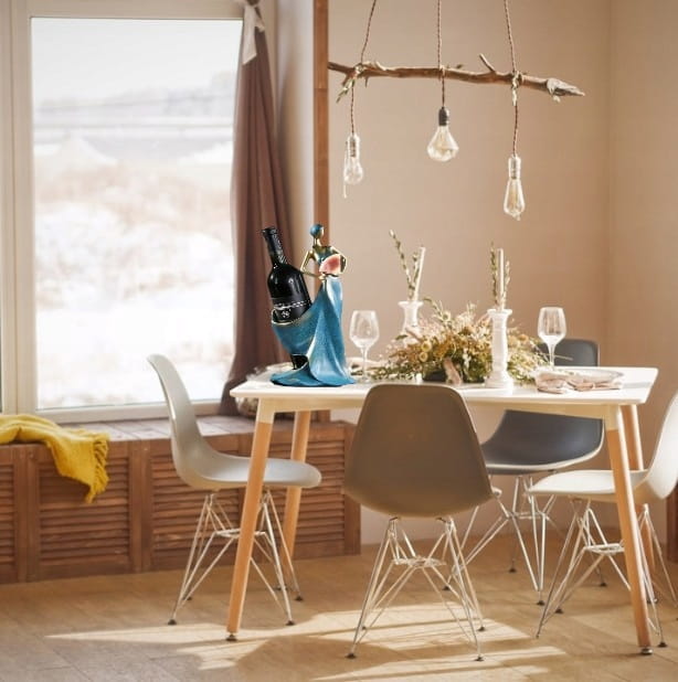 Niepowtarzalny stojak na wino prezentuje piękną butelkę w niezwykły sposób i przyciąga uwagę