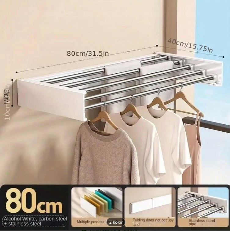 Dzięki składanej konstrukcji, możesz bez trudu zaoszczędzić miejsce w łazience, pralni czy balkonie, a solidna budowa zapewnia stabilność i długą trwałość produktu. Po rozłożeniu zapewnia wystarczającą powierzchnię do suszenia. To praktyczne narzędzie do każdego domu, które łączy funkcjonalność, estetykę i wygodę.