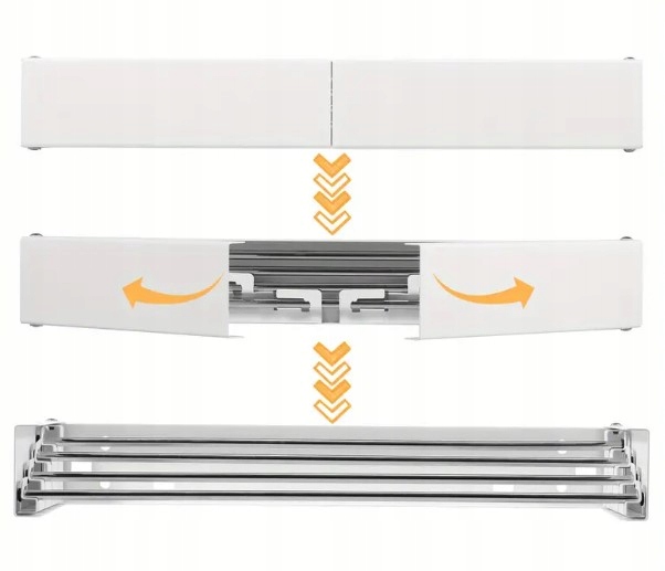Suszarkę montuje się bezpośrednio na ścianie (z wyjątkiem ścian gipsowych i ścian pustych) nie wymaga użycia stojaków ani zajmowania miejsca na podłodze. Dzięki dołączonym elementom montażowym, instalacja suszarki jest szybka i prosta, a jej mocowanie jest solidne, co zapewnia stabilność nawet przy pełnym obciążeniu.
