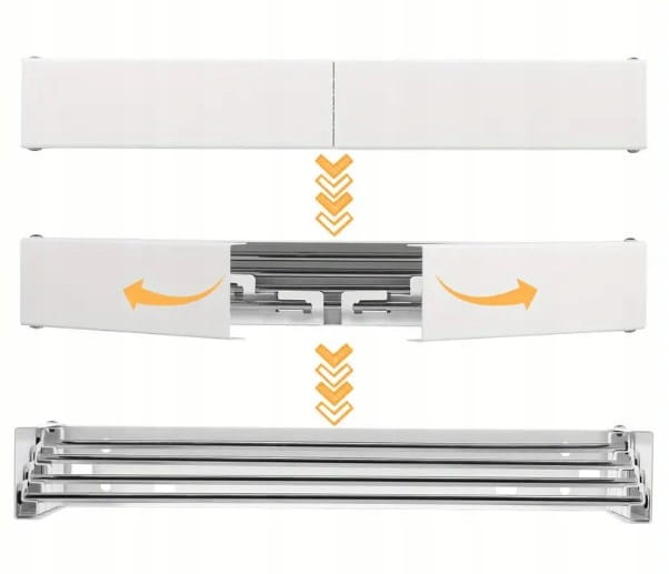 Dzięki praktycznemu mechanizmowi, rozłożenie suszarki zajmuje tylko chwilę, a gdy nie jest używana, można ją szybko złożyć, oszczędzając miejsce. Jest to szczególnie wygodne rozwiązanie dla osób, które potrzebują dodatkowej przestrzeni w łazience lub pralni, ale nie chcą rezygnować z wygody posiadania suszarki.