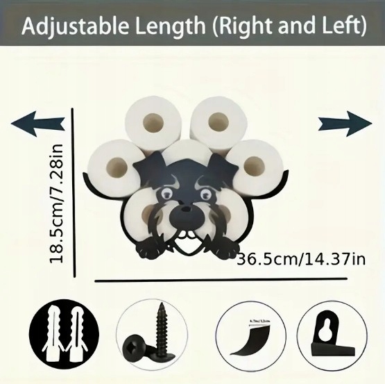 Przepiękny uchwyt z motywem Dużego Psa stworzy przyjazną atmosferę w Twoim domu. Sprawia, że przechowywanie zapasowego papieru toaletowego jest oryginalne i mile zaskoczy każdą osobę w łazience.