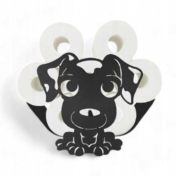 UCHWYT STOJAK WIESZAK NA PAPIER TOALETOWY OZDOBNY METAL POJEMNIK DUŻY PIES