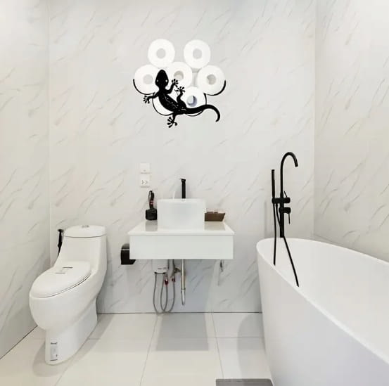 Ozdobny wieszak na papier toaletowy do montażu na ścianie. Stylowy element dekoracyjny do każdej łazienki, który łączy funkcjonalność z estetyką.