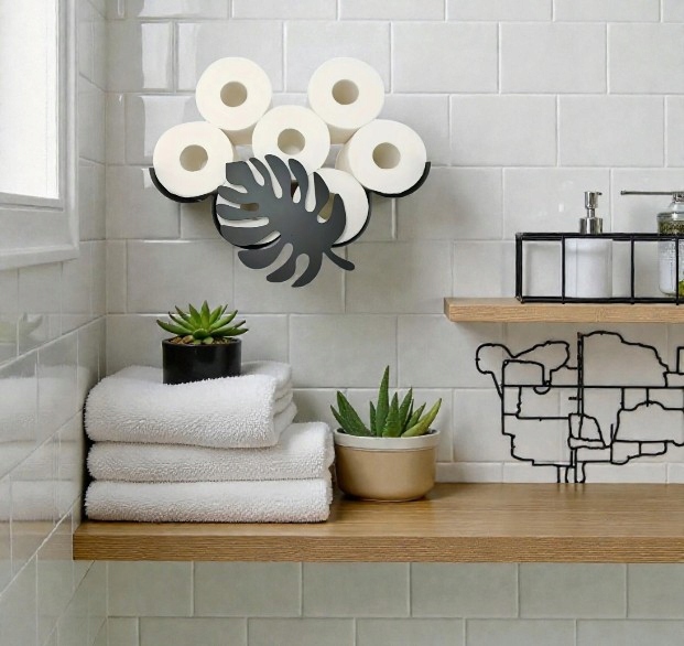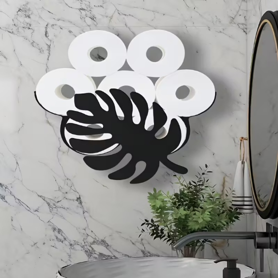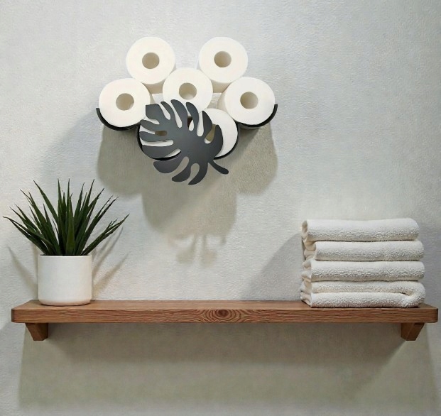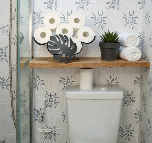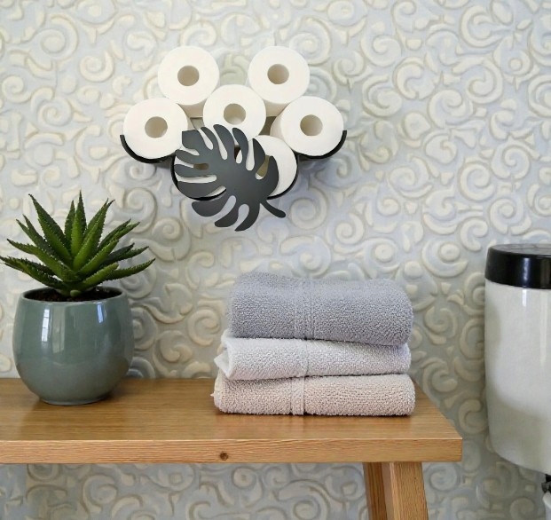 Przepiękny uchwyt z motywem liścia Monstery stworzy przyjazną atmosferę w Twoim domu. Sprawia, że przechowywanie zapasowego papieru toaletowego jest oryginalne i mile zaskoczy każdą osobę w łazience.