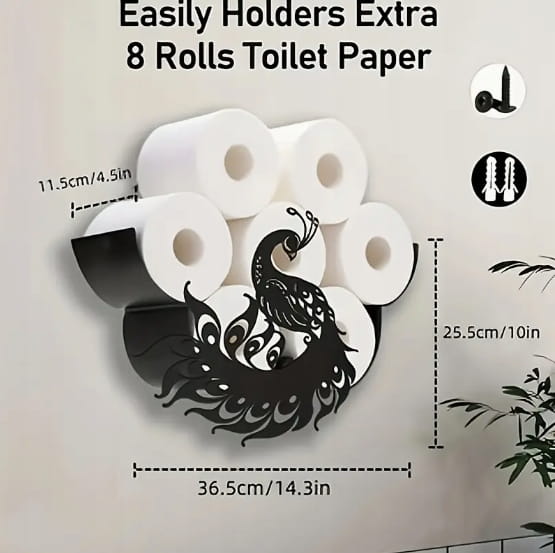 Przepiękny uchwyt z motywem Pawia stworzy przyjazną atmosferę w Twoim domu. Sprawia, że przechowywanie zapasowego papieru toaletowego jest oryginalne i mile zaskoczy każdą osobę w łazience.