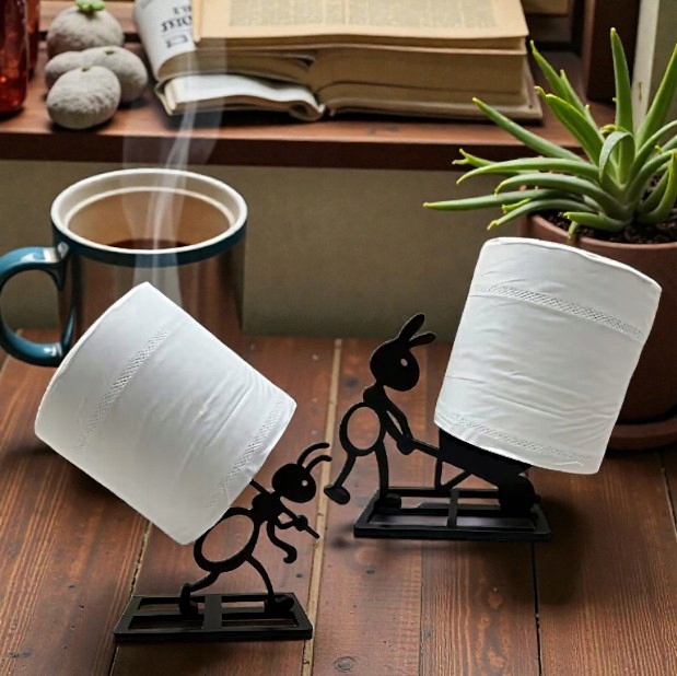 Minimalistyczny uchwyt na papier toaletowy w kształcie mrówki – 2 szt.