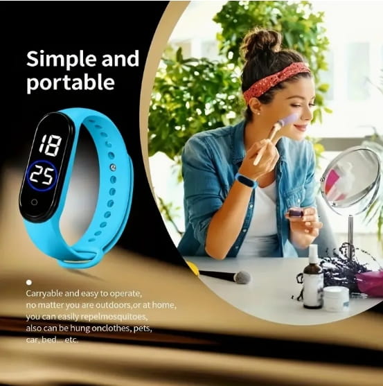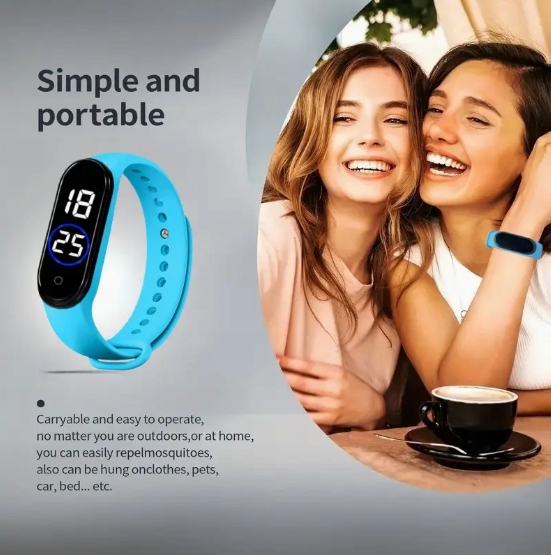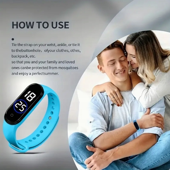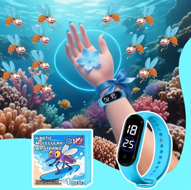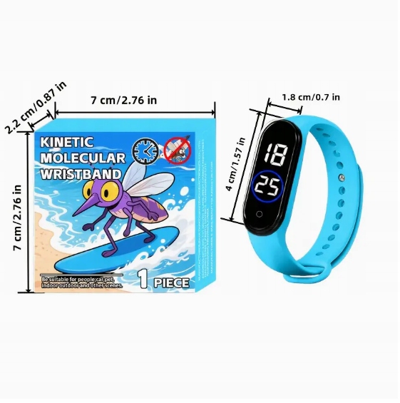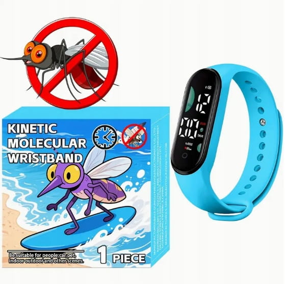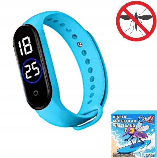 ULTRADZWIĘKOWA OPASKA BRANSOLETKA ZEGAREK PRZECIW KOMAROM NA KOMARY BŁĘKIT