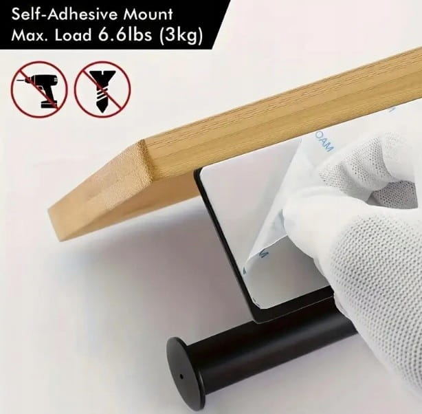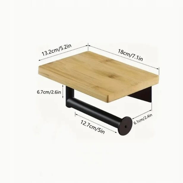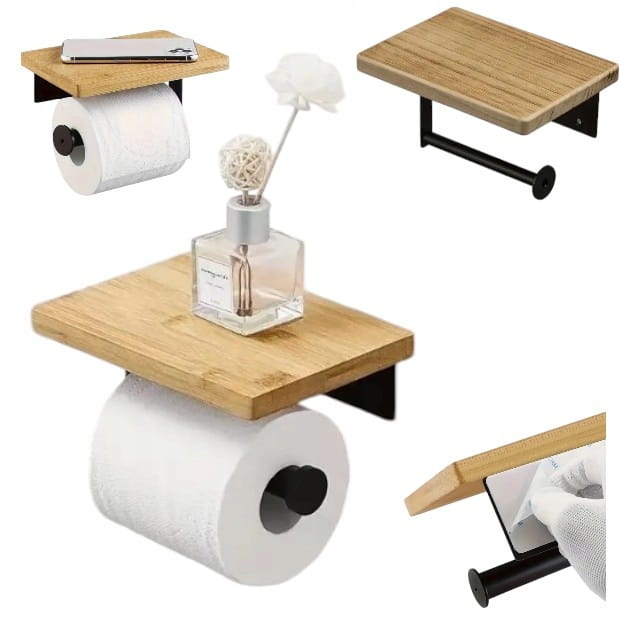 Uchwyt Na Papier Toaletowy Wieszak Czarny Loft z półką bambusową przylepny