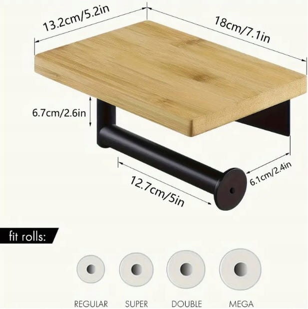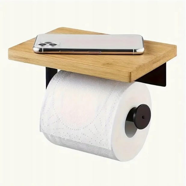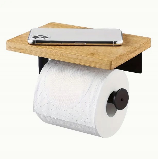 Elegancki uchwyt na papier toaletowy powinien być wyposażeniem każdej łazienki. Prosta konstrukcja w kolorze czarnego uchwytu z praktyczną drewnianą półką w barwach i strukturze bambusa idealnie sprawdzi się w stylu loftowym, skandynawskim, industrialnym czy tradycyjnym.