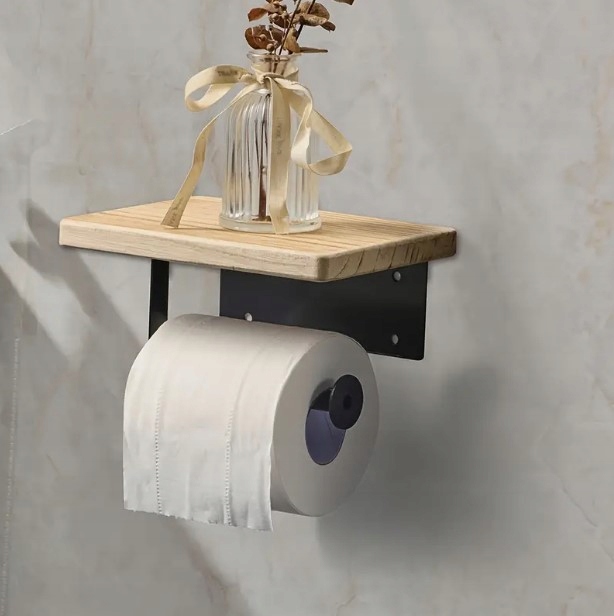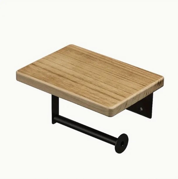 Stylowy uchwyt na papier toaletowy z drewnianą półką LOFT samoprzylepny