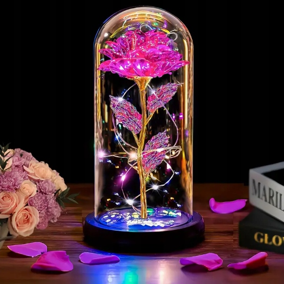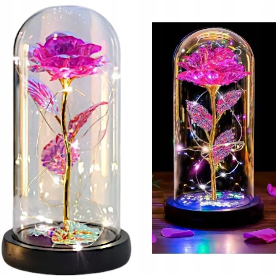 Nasza świecąca Wieczna Róża w Szkle LED to symbol nieprzemijającego uczucia – idealny prezent dla mamy, babci, żony, dziewczyny lub bliskiej osoby na każdą okazję.