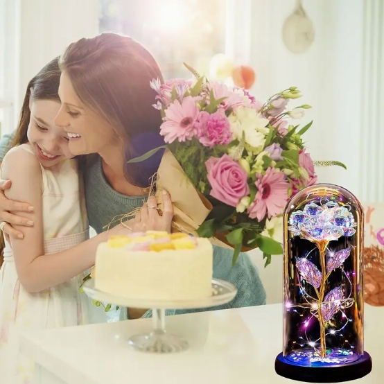 Nasza świecąca Wieczna Róża w Szkle LED to symbol nieprzemijającego uczucia – idealny prezent dla mamy, babci, żony, dziewczyny lub bliskiej osoby na każdą okazję.