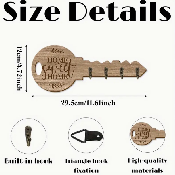Drewniany wieszak na klucze "HOME SWEET HOME"