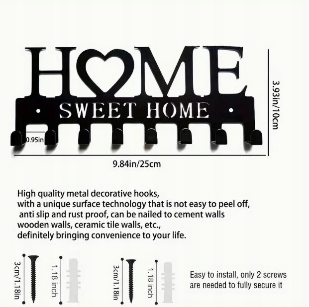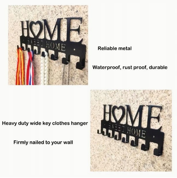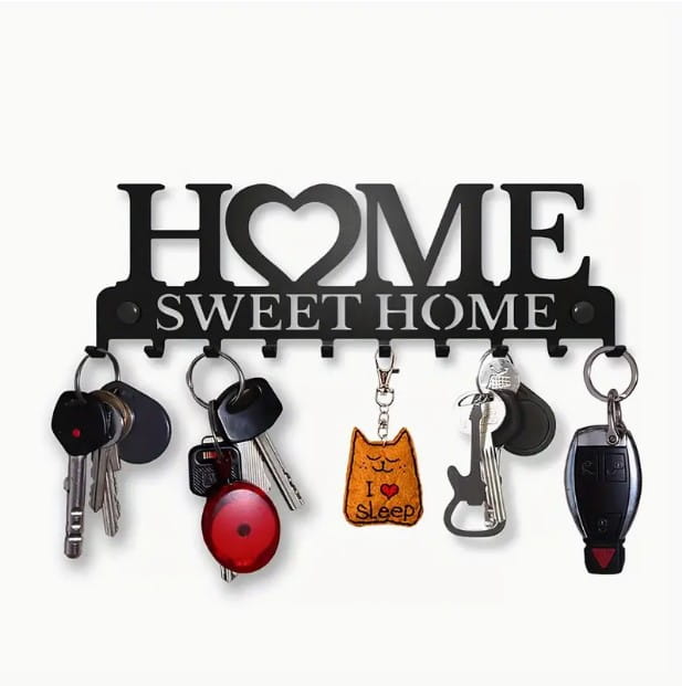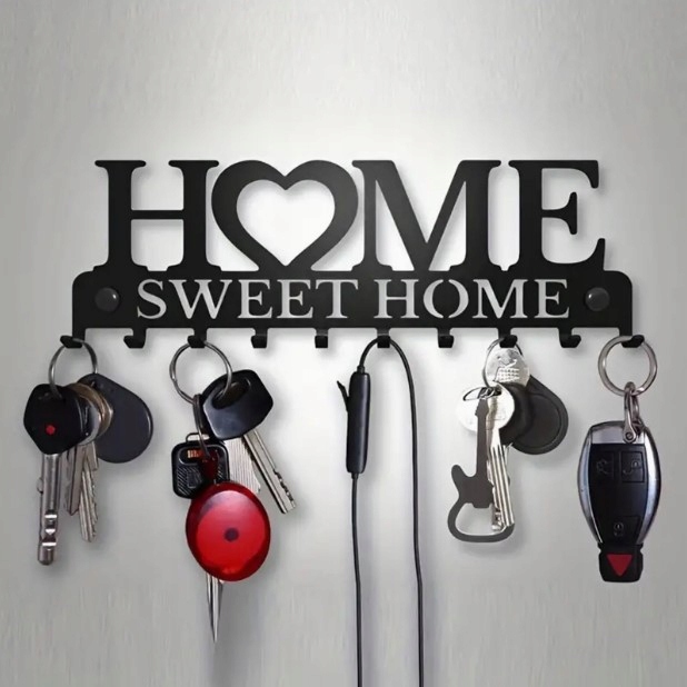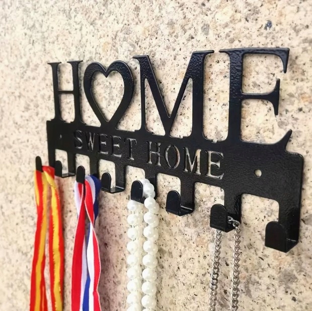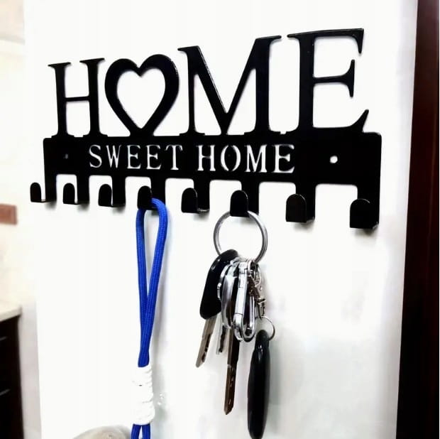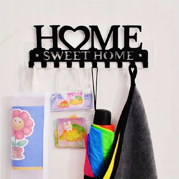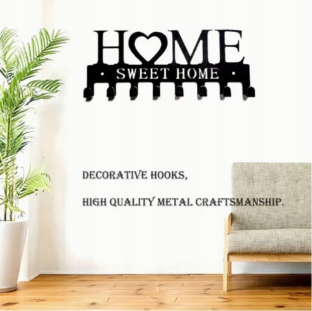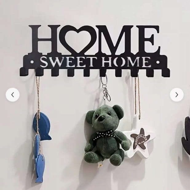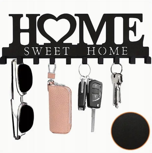 Elegancki, dekoracyjny wieszak na klucze z napisem „DOM SŁODKI DOM” pozwala na utrzymanie porządku dzięki czemu już nigdy nie będziesz szukał kluczy po domu.