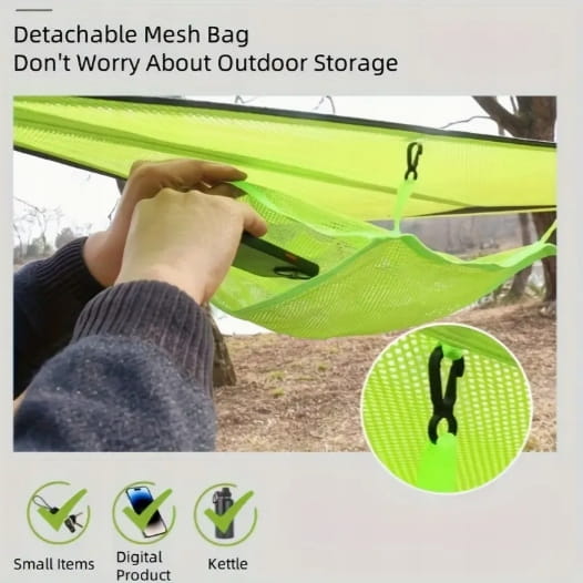 Duży, przenośny hamak na zewnątrz idealnie sprawdzi się w ogrodzie, podczas trekkingu czy na camping. Kompaktowy i lekki hamak wieloosobowy, można go zabrać wszędzie - zmieści się w plecaku, a szybki i łatwy montaż oferuję wygodę i relaks na zewnątrz.