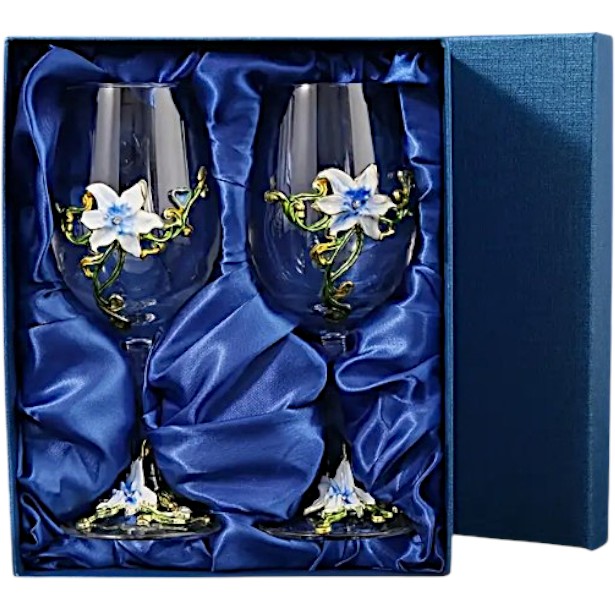 ELEGANCKI ZESTAW 2 SZT. KIELISZEK DO WINA NIEBIESKA LILIA