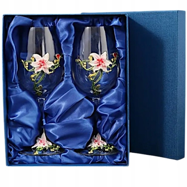 ZESTAW UPOMINKOWY KIELISZEK DO WINA RÓŻOWA LILIA KIELISZKI OZDOBN PREZENT