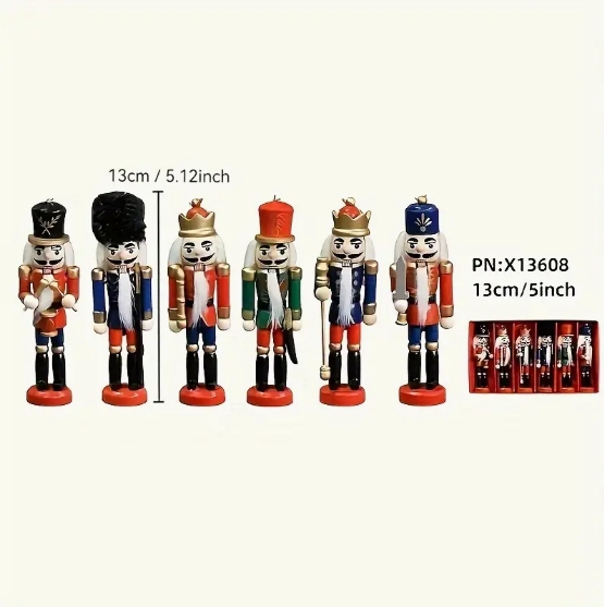 Zestaw 6 Drewnianych Figurek Dziadek do Orzechów Żołnierz Choinka 13 cm