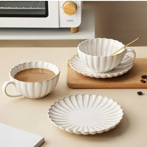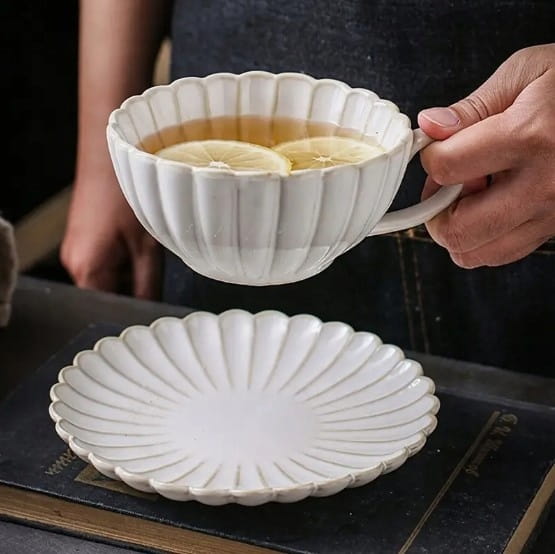 Zestaw wykonany jest z ceramiki i zawiera klasyczną filiżankę oraz spodek – idealny na śniadanie, podwieczorek, do domu, ogrodu czy restauracji.
